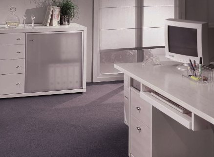 Nadelvlies Teppichboden in Bahnen (2m breit), dessen Struktur sieht ähnlich wie ein gepresster Filz aus. Sehr robust. Stuhlrollengeeignet. Besitzt alle Atteste, die für Anwendung im Bereich der Gemeinnützigkeit erfordert sind.